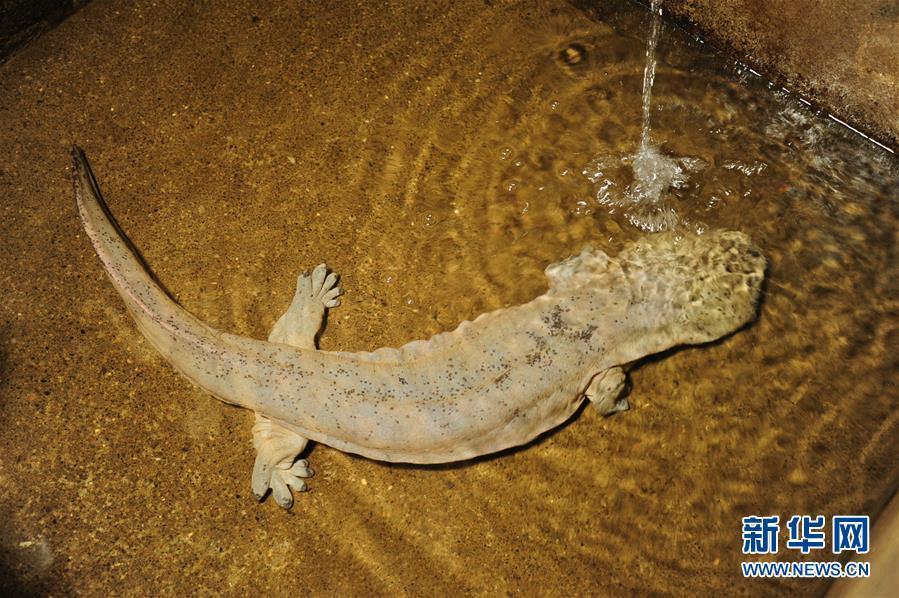 3月16日在湖南省大鯢救護(hù)中心拍攝的在野外獲救的一尾娃娃魚。 新華社記者 明星 攝 圖片來(lái)源:新華網(wǎng)