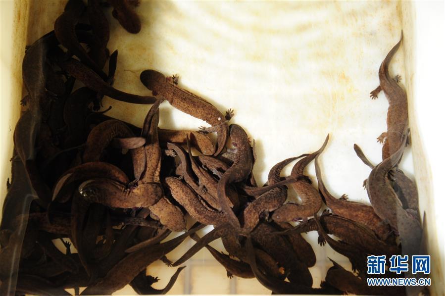 這是湖南省大鯢救護(hù)中心利用獲救的野生娃娃魚繁育的子一代娃娃魚苗(3月16日攝)。 新華社記者 明星 攝 圖片來(lái)源:新華網(wǎng)