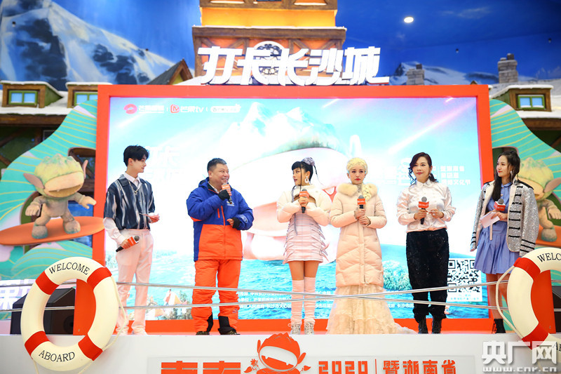 央廣網(wǎng)長沙7月27日消息(記者姜文婧 文湘霖)七月的長沙天氣熱情似火,位于湖南湘江新區(qū)核心片區(qū)大王山的湘江歡樂城內(nèi)卻白雪皚皚,冰爽十足。懸浮于百米深坑之上的室內(nèi)冰雪主題樂園實時溫度零下5攝氏度。7月26日下午,2020“青春芒果節(jié) 打卡長沙城”快閃活動在湘江歡樂城舉行,“乘風破浪”的小姐姐們在冰雪中活力起舞,拉開了第二站的活動帷幕。
