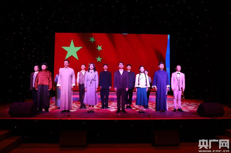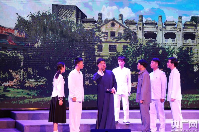 央廣網(wǎng)長沙7月2日消息(記者蔣琦 傅蕾 通訊員龍韶國)7月1日,大型歷史舞臺(tái)劇《田漢眼中的中國》在湖南長沙縣果園鎮(zhèn)公開首演。田漢文化園田漢小劇場(chǎng)裝飾一新的舞臺(tái)上,星光閃爍,隨著三聲悅耳鐘聲敲響,帷幕拉開,一條時(shí)光隧道引領(lǐng)著觀眾回到了中國上世紀(jì)初葉那個(gè)貧弱動(dòng)蕩的年代……
