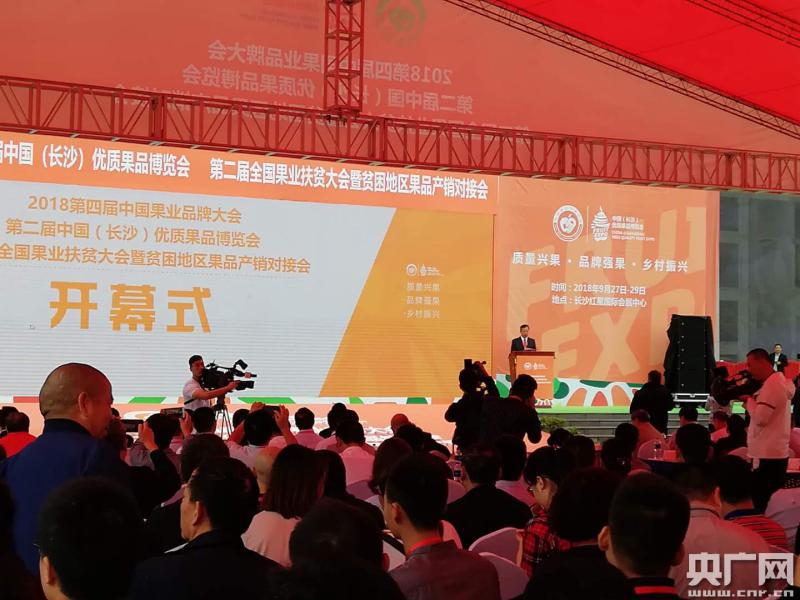 央廣網(wǎng)長(zhǎng)沙9月27日消息(記者鄧文輝)9月27日,2018第四屆中國(guó)果業(yè)品牌大會(huì)、第二屆中國(guó)(長(zhǎng)沙)優(yōu)質(zhì)果品博覽會(huì)、第二屆全國(guó)果業(yè)扶貧大會(huì)暨貧困地區(qū)果品產(chǎn)銷對(duì)接會(huì)(以下簡(jiǎn)稱大會(huì))在長(zhǎng)沙紅星國(guó)際會(huì)展中心南廣場(chǎng)開(kāi)幕,來(lái)自全國(guó)各地的領(lǐng)導(dǎo)嘉賓、專家學(xué)者,客商、種植大戶共同參加了開(kāi)幕式,共商中國(guó)果業(yè)轉(zhuǎn)型升級(jí)、果業(yè)扶貧大計(jì)。
