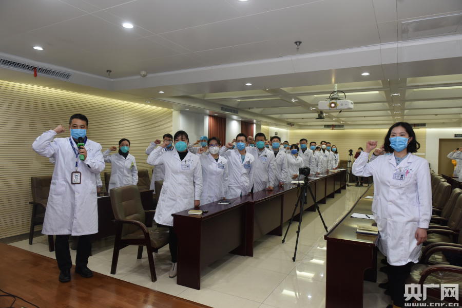 湘雅二醫(yī)院抗擊新型冠狀病毒肺炎預(yù)備隊(duì)宣誓(央廣網(wǎng)發(fā) 湘雅二醫(yī)院黨委辦供圖)