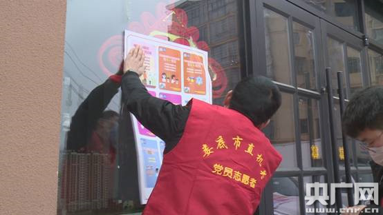 志愿者在社區(qū)張貼疫情防控宣傳海報(央廣網(wǎng)發(fā) 通訊員章娜 攝)