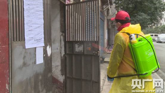 在金谷市場小區(qū),前期排查有一戶節(jié)后途經(jīng)湖北返鄉(xiāng)人員正處于自我隔離期,市教育局志愿服務隊迅速劃分重點,對周邊樓道、門把手等關鍵區(qū)域采取噴灑方式消毒。
