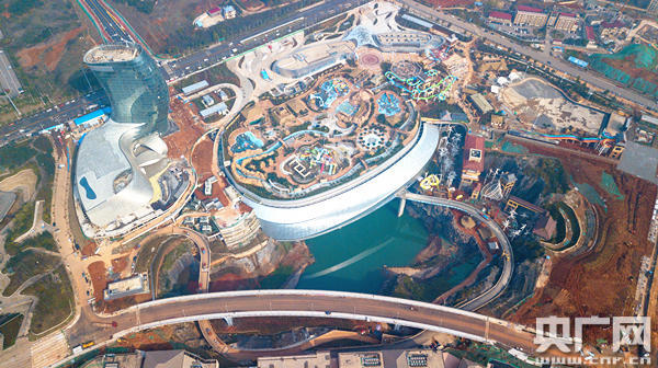 湘江歡樂城“鑲嵌”在一個(gè)巨大的廢棄礦坑上(央廣網(wǎng)發(fā) 中建五局供圖)