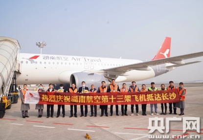 湖南航空第13架A320NEO新飛機抵達長沙(央廣網(wǎng)發(fā) 湖南航空提供)