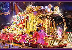 而香港迪士尼樂園今年將首次以“雙車”設計,粉紅色車體上掛滿燈籠,顯得頗為喜慶。屆時超級英雄鋼鐵俠和《海洋奇緣》的小雞憨憨,將連同其他迪士尼動畫角色與大家拜年。這樣的場景與迪士尼樂園中各種卡通角色站在花車上巡游并向大家招手的形式有“異曲同工”之妙。