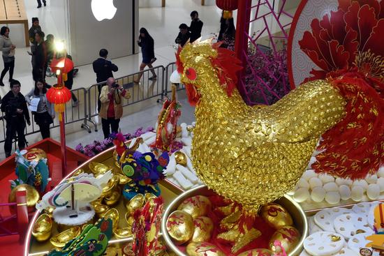 香港商場(chǎng)布置“金雞報(bào)喜藝術(shù)園”迎新春