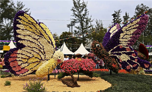 據(jù)悉,“游園樂”花壇由3萬多株不同品種的花卉植物鑲嵌而成,展示游樂場內(nèi)傳統(tǒng)機動游戲的造型,包括旋轉(zhuǎn)木馬、摩天輪、小火車和碰碰車。