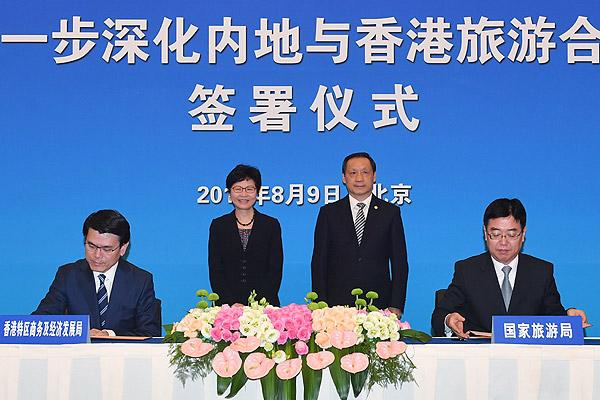 香港特區(qū)政府與國家旅游局9日在京簽署《關(guān)于進一步深化內(nèi)地與香港旅游合作協(xié)議》,進一步加強雙方在旅游發(fā)展領(lǐng)域的交流合作。