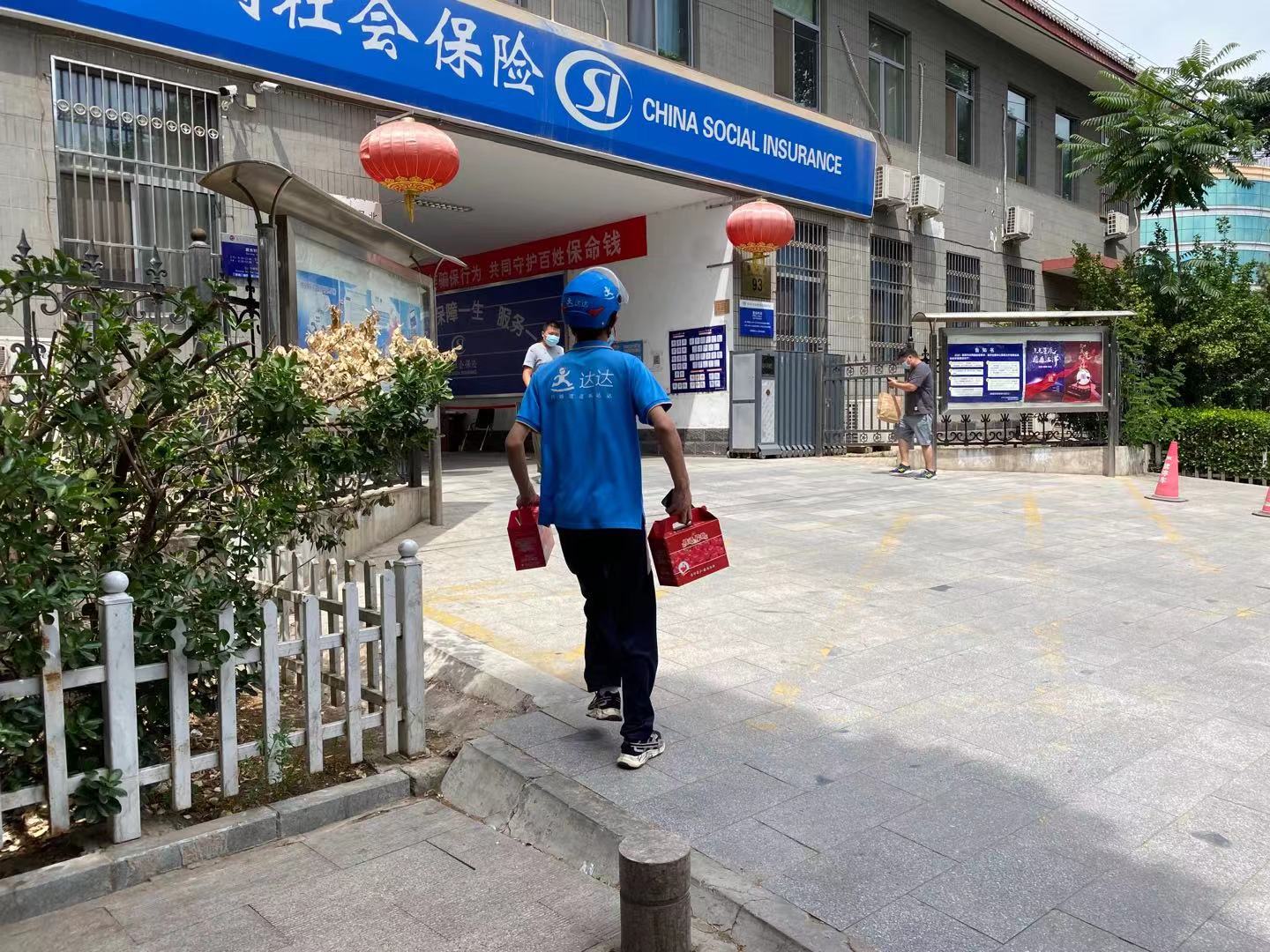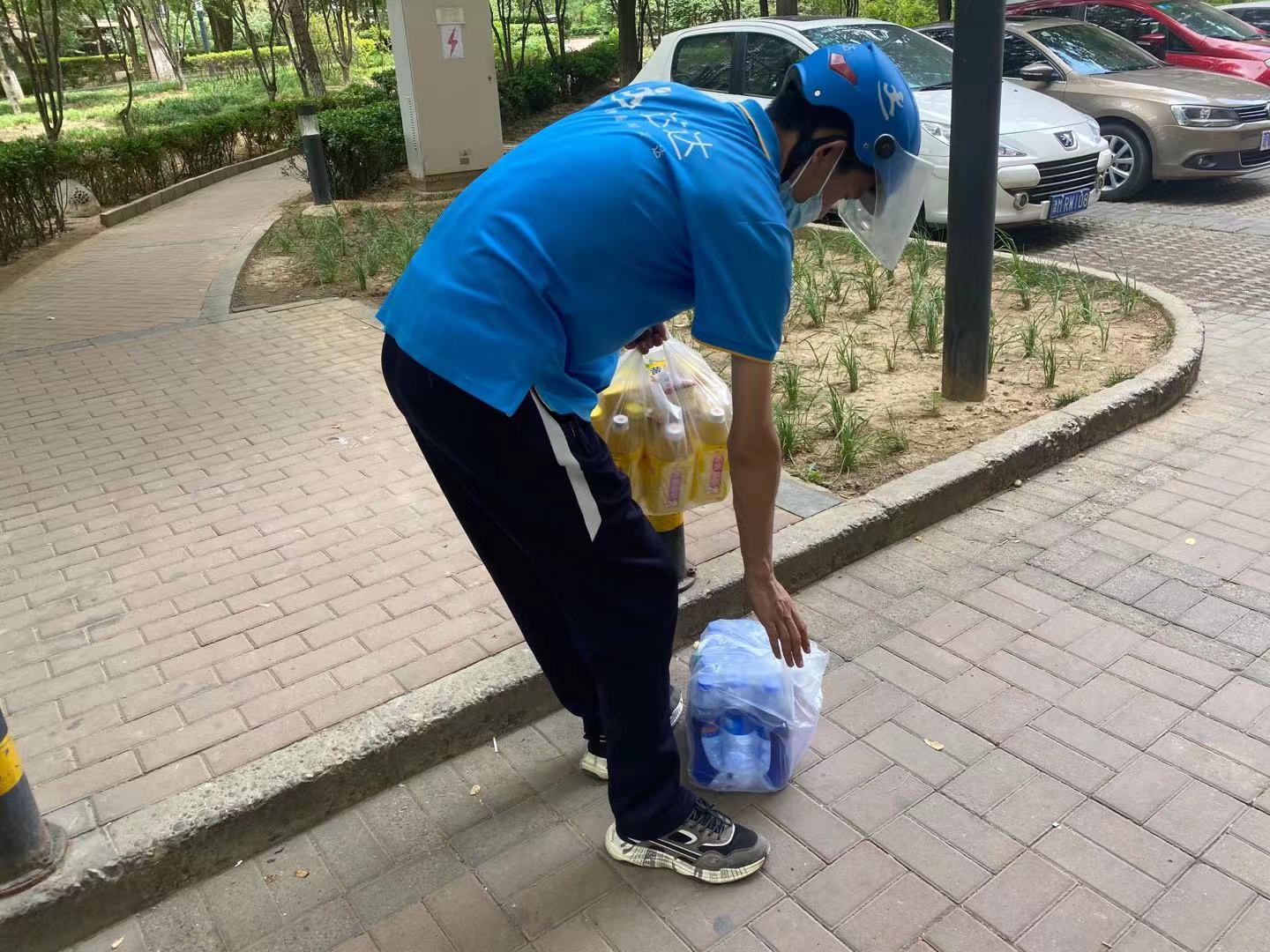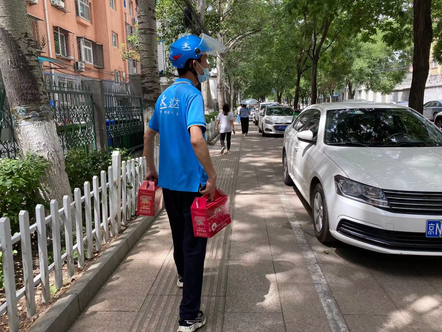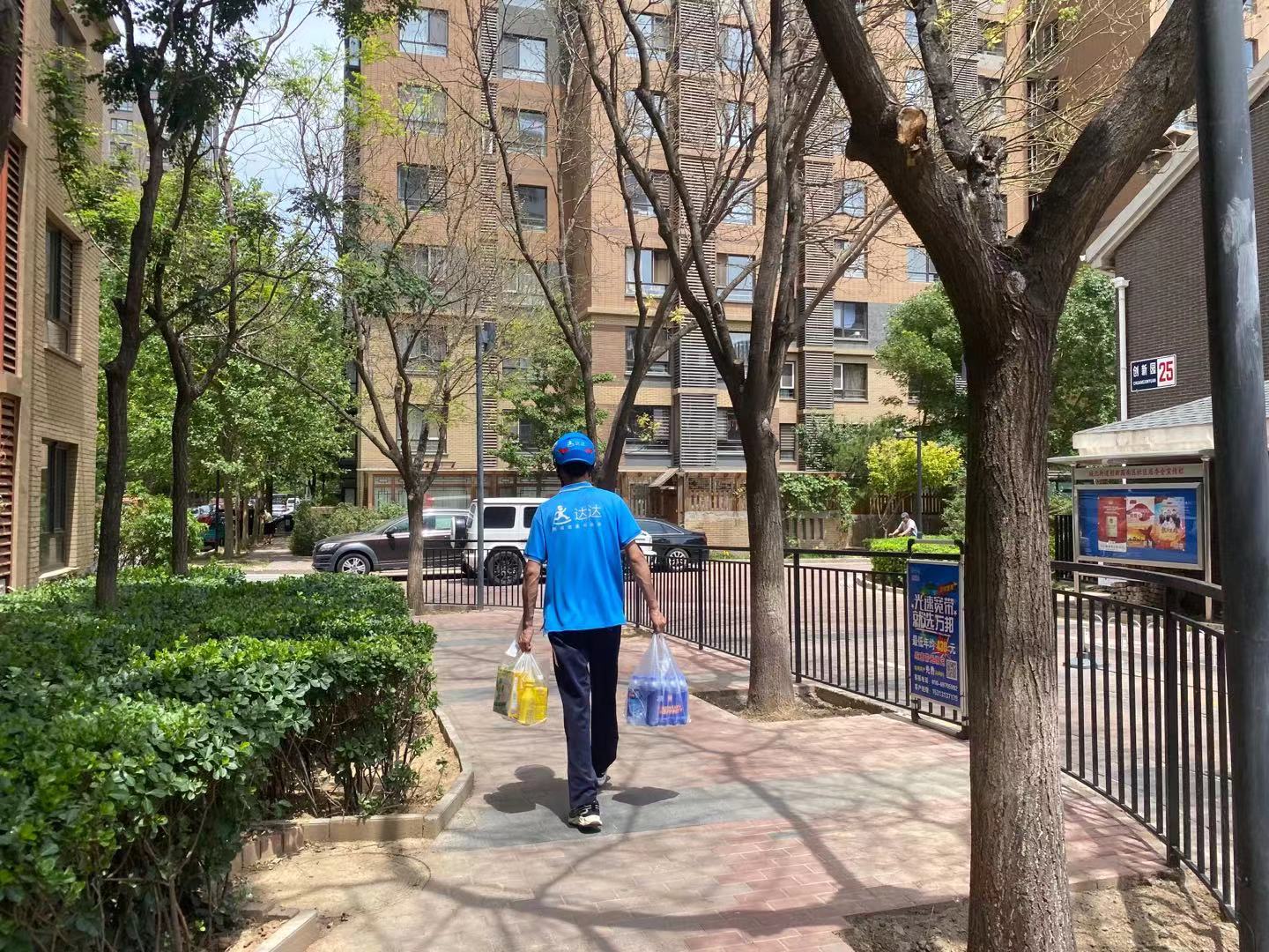 孫德權(quán)步行進(jìn)入小區(qū)送貨