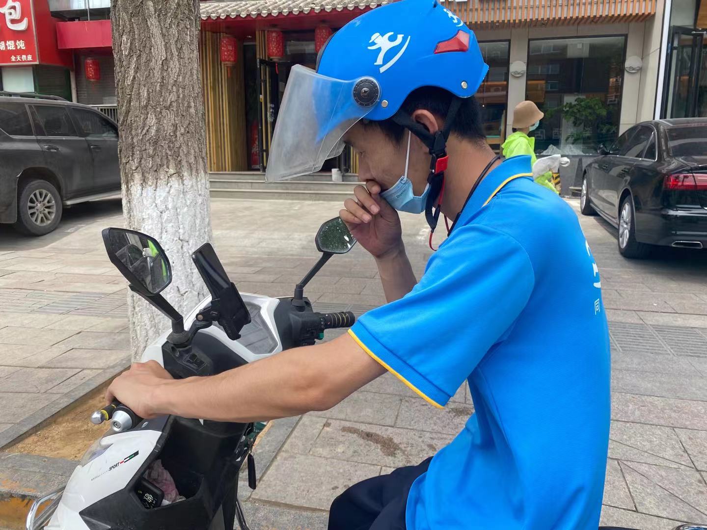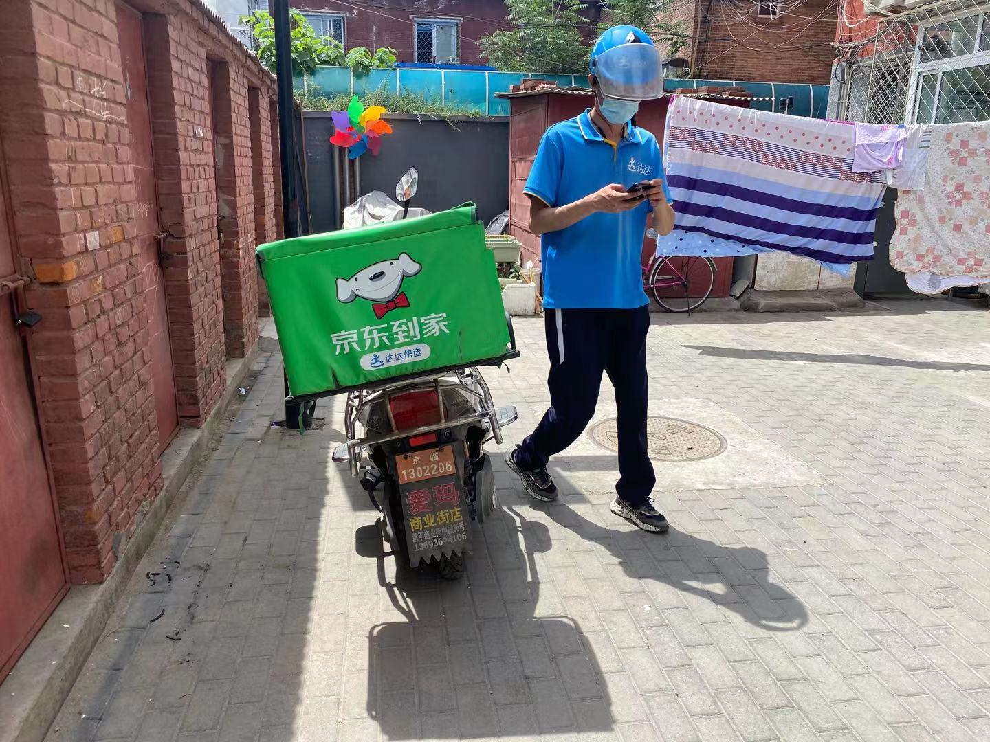 對孫德權(quán)來說,騎手工作最辛苦的地方是冬夏兩季的天氣,夏天頂著烈日,冬天迎著寒風(fēng),北京的6月,取貨送貨的一小會(huì)兒,電動(dòng)車座已經(jīng)曬得燙屁股,而這還不是最熱的時(shí)候。