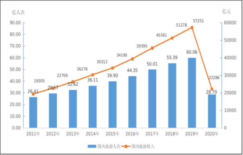 在旅行方面,國內(nèi)旅行成為出行重點(diǎn),紅色旅游發(fā)展持續(xù)向好。數(shù)據(jù)顯示2020年末,全國共有A級(jí)旅游景區(qū)13332個(gè),比上年末增加930個(gè)。2020年,全年國內(nèi)旅游人數(shù)28.79億人次,比上年同期下降52.1%。國內(nèi)旅游收入2.23萬億元,同比下降61.1%。