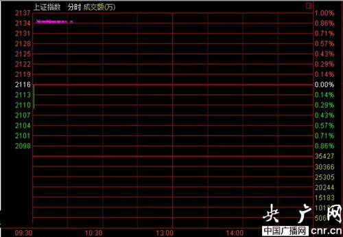央廣網(wǎng)財經(jīng)北京1月2日消息 今日是2014年首個交易日,滬深兩市早盤低開,截至開盤,滬指低開0.18%,報2112.13點,深成指低開0.47%,報8083.77點,創(chuàng)業(yè)板低開0.16%,報1302.30點。