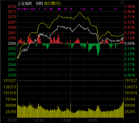 截至收盤(pán),滬指報(bào)2059.07點(diǎn),上漲3.48點(diǎn),漲幅0.17%,成交825.1億元;深成指報(bào)7259.45點(diǎn),上漲64.71點(diǎn),跌幅0.90%,成交967.6億元;創(chuàng)業(yè)板指報(bào)1305.92點(diǎn),下跌6.89點(diǎn),跌幅0.52%,成交193.1億元。