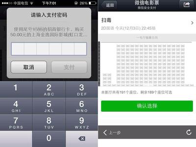 用微信買電影票最大的特點(diǎn)就是方便,點(diǎn)到錢包以后直接在錢包里購(gòu)買電影票。黃福建說(shuō), 團(tuán)隊(duì)做過(guò)一個(gè)測(cè)試,在微信上購(gòu)買一一張電影票,十秒鐘就可以買到。