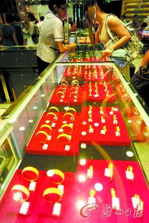 “老鳳祥被查事件,聽說了呀,大牌之間潛規(guī)則不降價,要不然,國際金價跌那么快,怎么沒有見他們大降價?”在天河區(qū)的某高檔商場,林阿姨對記者如是說;周末她來商場挑黃金項(xiàng)鏈,但只看不買,“報(bào)上說,黃金還會跌嘛!