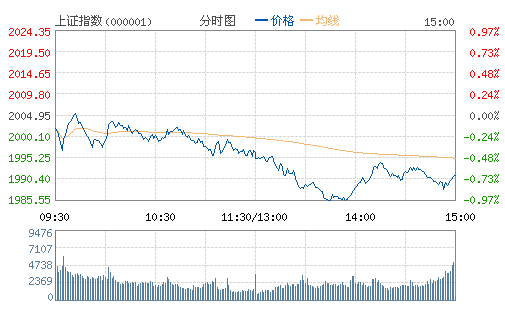 滬指跌0.68%失守2000點(diǎn) 成交量創(chuàng)14個月來新低