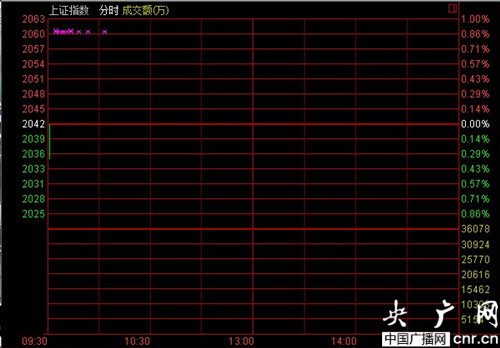 央廣網(wǎng)財經(jīng)北京1月24日消息 滬指開盤報2037.67點,下跌4.51點,跌幅0.22%,成交3.28億元;深成指開盤報7771.58點,下跌16.89點,跌幅0.22%,成交10億元。