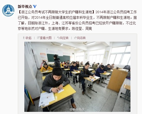 浙江公務(wù)員考試不再限制大學(xué)生的戶籍和生源地