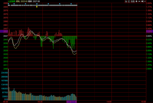 新華網(wǎng)消息 周五兩市低開,后在石化雙雄帶動下滬指一路飄紅,隨后中國石化回調(diào),滬指飄綠,圍繞2050點多空雙方展開火拼。深成指開盤后振蕩走高,網(wǎng)絡(luò)信息安全概念出現(xiàn)大幅上漲,多只個股一度漲停。截至午盤,滬指報2027.88點,下跌19.47點,跌幅0.95%,成交499.74億元;深成指報7219.30點,上漲30.56點,漲幅0.43%,成交756.62億元;創(chuàng)業(yè)板指報1397.11點,下跌17.55點,漲幅1.24%,成交170.23億元。