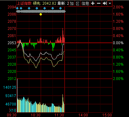 新華網(wǎng)消息 今日早盤兩市低開后小幅走高,盤中一度翻紅;后在權(quán)重拖累下大幅殺跌,滬指盤中一度跌近1%;后在券商帶動(dòng)下小幅反彈,隨后窄幅震蕩。臨近早間收盤,在石化雙雄、券商、銀行的拉動(dòng)下,大盤急速走高。截至午盤,滬指報(bào)2051.05點(diǎn),下跌2.03點(diǎn),跌幅0.10%,成交506.60億元;深成指報(bào)7283.95點(diǎn),下跌14.18點(diǎn),跌幅0.19%,成交704.74億元;創(chuàng)業(yè)板指報(bào)1454.65點(diǎn),下跌9.93點(diǎn),跌幅0.68%,成交176.78億元。