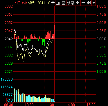 新華網(wǎng)消息 今日早盤兩市高開后震蕩走低,滬深股指表現(xiàn)分化,深成指強(qiáng)于上證指數(shù),兩市成交量縮小,絲綢之路相關(guān)個(gè)股活躍。截至午盤,滬指報(bào)2043.41點(diǎn),上漲1.70點(diǎn),漲幅0.08%,成交415.46億元;深成指報(bào)7226.59點(diǎn),上漲64.02點(diǎn),漲幅0.89%,成交451.62億元;創(chuàng)業(yè)板指報(bào)1338.67點(diǎn),上漲8.17點(diǎn),漲幅0.61%,成交91.28億元。