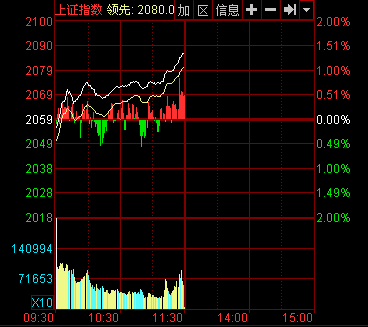 兩市震蕩走高滬指漲1.34% 權(quán)重股集體拉升