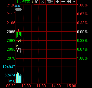 新華網(wǎng)消息 今日早盤,兩市低開低走,銀行、券商、保險(xiǎn)等權(quán)重股集體不作為,大盤震蕩下行,滬指逼近2080點(diǎn),截至發(fā)稿,滬指報(bào)2083.32點(diǎn),跌幅0.76%,深成指報(bào)7385.56點(diǎn),跌幅0.88%,創(chuàng)業(yè)板報(bào)1370.38點(diǎn),漲幅0.20%。