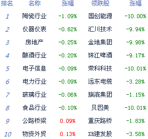 盤面上,蘋果概念、充電樁、煤炭板塊、節(jié)能照明、新疆板塊漲幅靠前。人腦工程、西藏板塊、豬肉概念跌幅靠前。