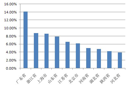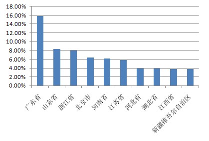 以下為本期十大熱門(mén)股票的搜索地域分布(數(shù)據(jù)均來(lái)源360搜索):