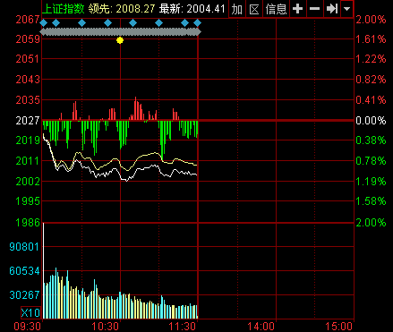 早盤滬深兩市低開低走,成交量略放大,受煤炭、券商、白酒、黃金水道等板塊的影響,大盤走低,在2000點上方展開震蕩整理,滬指2000點再受考驗。盤中,傳媒、互聯(lián)網(wǎng)板塊拉升護盤。