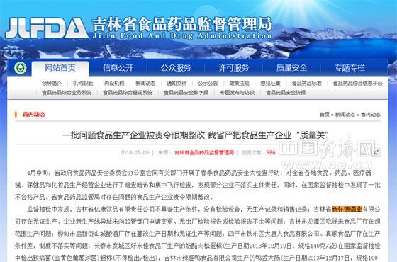 吉林省食藥監(jiān)局網(wǎng)站截圖