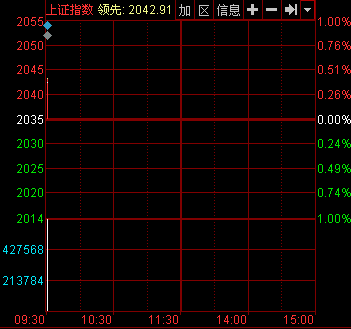 新華網(wǎng)消息 今日早盤(pán)滬深兩市雙雙小幅高開(kāi),滬指報(bào)2042.03點(diǎn),上漲7.46點(diǎn),漲幅0.37%,成交5.00億元;深成指報(bào)7289.63點(diǎn),上漲48.71點(diǎn),漲幅0.67%,成交10.64億元;創(chuàng)業(yè)板指報(bào)1301.87點(diǎn),上漲5.87點(diǎn),漲幅0.45%,成交2.09億元。