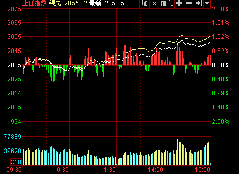 截至收盤,滬指報2050.23點,上漲15.93點,漲幅0.77%,成交686.02億元;深成指報7380.69點,上漲120.57點,漲幅1.66%,成交1029.99億元;創(chuàng)業(yè)板指報1338.97點,上漲32.69點,漲幅2.50%,成交291.91億元。