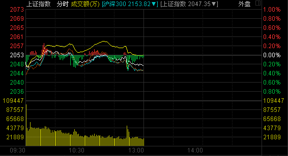 截至午盤,滬指報(bào)2047.35點(diǎn),下跌5.18點(diǎn),跌幅0.25%,成交346.57億元;深成指報(bào)7316.67點(diǎn),下跌24.99點(diǎn),跌幅0.34%,成交574.58億元;創(chuàng)業(yè)板指報(bào)1360.45點(diǎn),上漲6.58點(diǎn),漲幅0.49%,成交190.15億元。