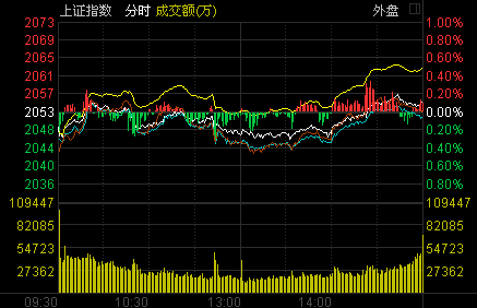 截至收盤,滬指報(bào)2054.95點(diǎn),上漲2.42點(diǎn),漲幅0.12%,成交631.77億元;深成指報(bào)7340.69點(diǎn),下跌0.97點(diǎn),跌幅0.01%,成交987.21億元;創(chuàng)業(yè)板指報(bào)1367.39點(diǎn),上漲13.52點(diǎn),漲幅1.00%%,成交306.52億元。