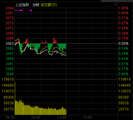 截至午盤,滬指報(bào)2056.46點(diǎn),下跌6.77點(diǎn),跌幅0.33%,成交489.6億元;深成指報(bào)7329.80點(diǎn),上漲5.74點(diǎn),漲幅0.08%,成交777.0億元;創(chuàng)業(yè)板指報(bào)1408.83點(diǎn),下跌13.77點(diǎn),跌幅0.97%%,成交202.6億元。