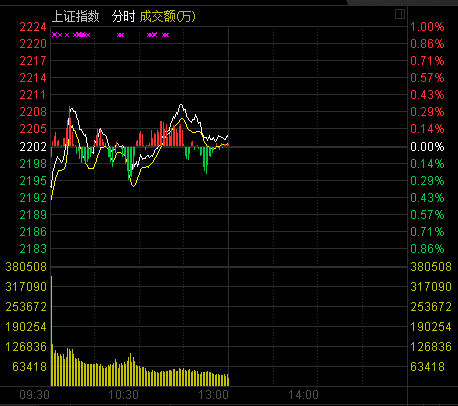 新華網(wǎng)消息 今日兩市低開,早盤指數(shù)震蕩調(diào)整,生物疫苗及醫(yī)藥板塊推動兩市翻紅。創(chuàng)業(yè)板低開隨后跌幅收窄。成交量方面較昨日幾乎持平。截至午盤,滬指報2203.08點,上漲1.52點,漲幅0.07%,成交770.9億元;深成指報7958.69點,上漲1.78點,漲幅0.02%,成交874.8億元;創(chuàng)業(yè)板指報1342.28點,下跌2.26點,跌幅0.17%,成交131.4億元。