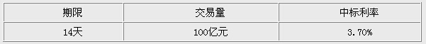 中國經(jīng)濟網(wǎng)北京8月21日訊(記者 韋偉)今日,央行以利率招標(biāo)方式開展為期14天100億正回購操作,中標(biāo)利率為3.70%。