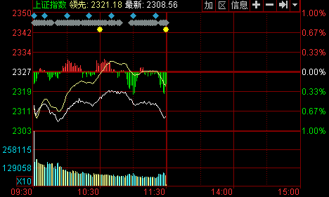 新華網(wǎng)消息 10日兩市雙雙低開,沖高受阻后回落跌破5日均線,創(chuàng)業(yè)板走出逆勢上漲行情,盤中站上1500點。金融、煤炭等權重股跌幅居前。截至午盤,滬指報2308.56點,下跌17.97點,跌幅0.77%,成交930億元;深成指報8127.86點,下跌73.65點,跌幅0.9%,成交1147億元;創(chuàng)業(yè)板指數(shù)報1495.01點,上漲0.99點,漲幅0.07%,成交231.5億元。