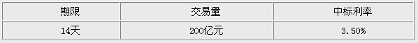 中國(guó)經(jīng)濟(jì)網(wǎng)北京9月30日訊 據(jù)央行網(wǎng)站消息,今日,央行將開(kāi)展為期14天200億元正回購(gòu)操作,中標(biāo)利率持平于3.50%。