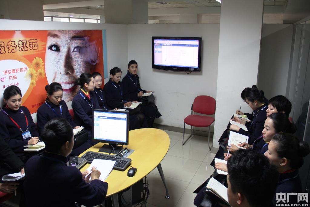 早上9:30。在飛行前的準備會上準備會上,主任乘務長孟繁玉帶領大家再次熟悉航路信息、安全設施,明確分工后,開始例行上機準備。