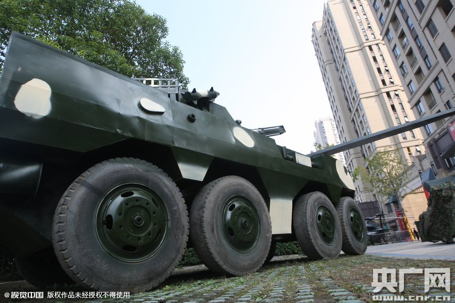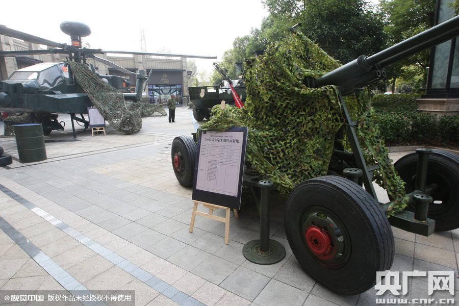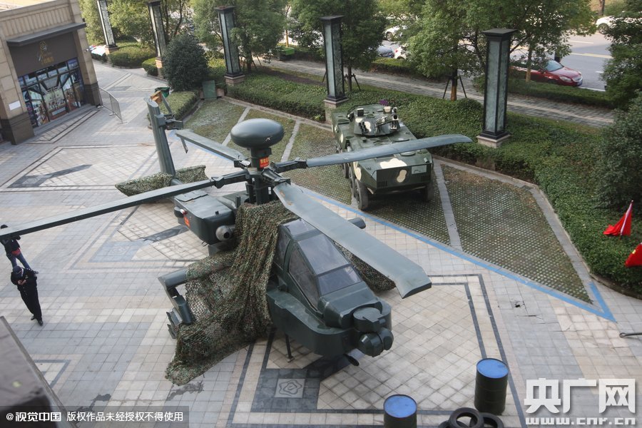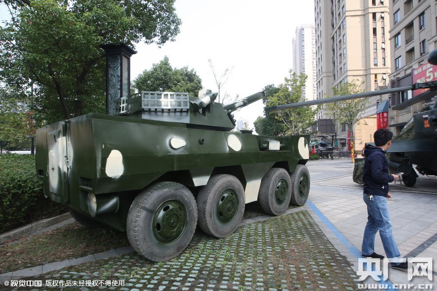 2015年11月02日,浙江杭州,杭州一家房產(chǎn)商為了沖量,用上了“飛機(jī)大炮坦克”。該開發(fā)商在樓盤外放置了三架仿真模型飛機(jī),一架艦載機(jī),兩架直升級(jí),另有兩門“大炮”、兩輛“裝甲車”、一輛“坦克”。這些大家伙因?yàn)橥庑伪普,吸引了市民的眼球?月至10月一向是一年成交旺季,自進(jìn)入金九銀十以來(lái),杭州各城區(qū)成交量有一定程度的上升,但因?yàn)閹?kù)存較大,銷售前景并不樂(lè)觀。