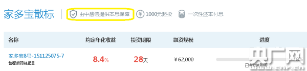 在鏈家理財?shù)木W(wǎng)站上,中融信給出的承諾是“中融信擔保公司會提供擔保,借款人一旦發(fā)生逾期還款,即啟動1億保證金進行本息代償”。