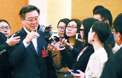 昨天,十二屆全國人大四次會議北京代表團(tuán)審議政府工作報告。會后,李士祥代表就行政副中心職住平衡問題回答記者提問。 記者 戴冰攝