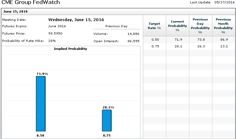 央廣網(wǎng)財(cái)經(jīng)5月30日消息 近日,美聯(lián)儲(chǔ)主席耶倫“鷹派”的表態(tài)令市場(chǎng)加息預(yù)期躥升。截止27日,據(jù)美國(guó)聯(lián)邦基金利率期貨,聯(lián)儲(chǔ)六月加息的概率達(dá)28.1%,七月則達(dá)到了60.7%。