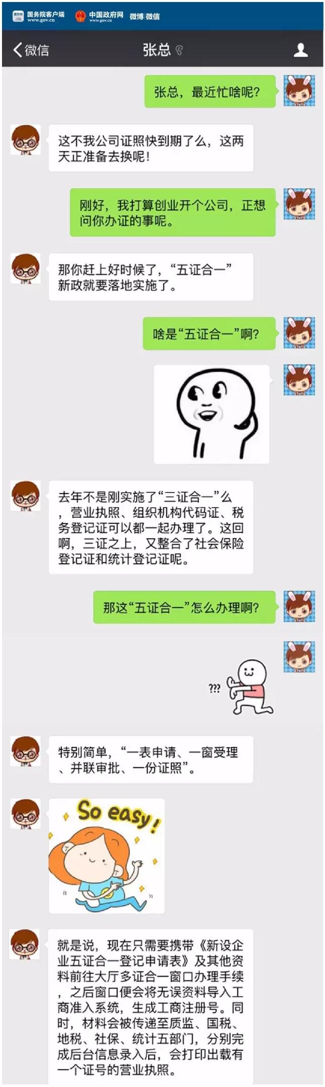 微信白話總理力推的企業(yè)“五證合一”