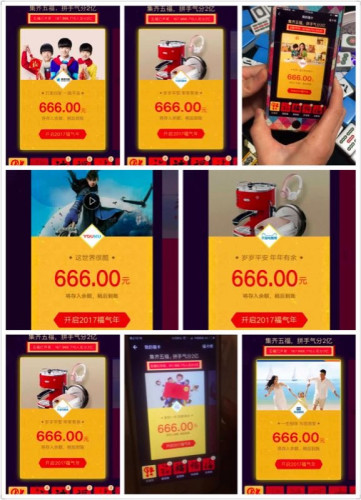 支付寶的五福紅包從1月18日開始推出后,隨即成為一場(chǎng)全民狂歡,五福相關(guān)話題幾乎每天都出現(xiàn)在微博熱搜。有網(wǎng)友笑稱,現(xiàn)在簡(jiǎn)直是看到“!弊志蜅l件反射掏出手機(jī),還有人用糖果、口紅甚至雞骨頭拼出“!弊謥(lái)掃,可謂腦洞大開。還有網(wǎng)友說(shuō),幫父母集齊了五福,順便教會(huì)了爸媽用智能手機(jī)。