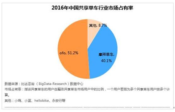 根據(jù)不完全統(tǒng)計,2016年就有30多家企業(yè)是進軍了共享單車領(lǐng)域,Mobike和ofo算是帶頭大哥,小弟有小白、小藍、小明、騎吧、快兔出行等等30多家。截止到今年2月份,摩拜單車已經(jīng)進入到北京、上海、濟南、武漢等15座城市,ofo宣稱覆蓋了全國33座主要城市,現(xiàn)在中國國內(nèi)共享單車數(shù)量已經(jīng)達到了數(shù)百萬輛。